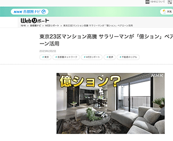 不動産動向「東京23区マンション高騰 サラリーマンが「億ション」ペアローン活用」という記事が、NHKに掲載されています。