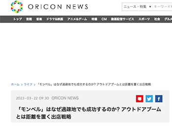 「「モンベル」はなぜ過疎地でも成功するのか? アウトドアブームとは距離を置く出店戦略」という記事が、ORICON NEWSに掲載されています。