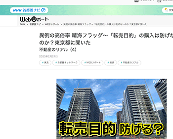 まちづくり「異例の高倍率 晴海フラッグ~「転売目的」の購入は防げないのか?東京都に聞いた」という記事が、NHKに掲載されています。