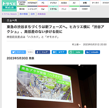 「東急の渋谷まちづくりは新フェーズへ。ヒカリエ横に「渋谷アクシュ」、高低差のない歩ける街に 神宮前交差点は「ハラカド」と「オモカド」」という東急と東急不動産の取り組みについて取り上げている記事が、トラベル Watchに掲載されています。