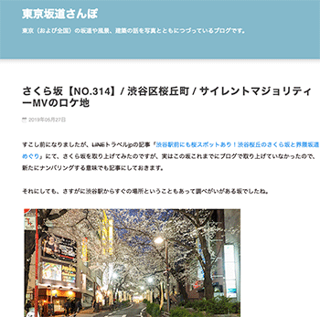 PR「さくら坂【NO.314】/ 渋谷区桜丘町 / サイレントマジョリティーMVのロケ地」という記事が、東京坂道さんぽに掲載されています。