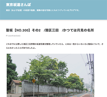 PR「聖坂【NO.300】その2 /港区三田 /かつては月見の名所」という記事が、東京坂道さんぽに掲載されています。