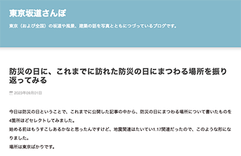 「防災の日に、これまでに訪れた防災の日にまつわる場所を振り返ってみる」という記事が、東京坂道さんぽに掲載されています。