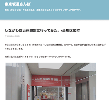 PR「しながわ防災体験館に行ってみた。/品川区広町」という記事が、東京坂道さんぽに掲載されています。