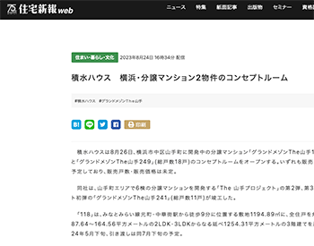 マンション「積水ハウス 横浜・分譲マンション2物件のコンセプトルーム」という積水ハウスの取り組みについて取り上げている記事が、住宅新報web に掲載されています
