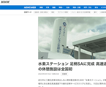 →『水素ステーション 足柄SAに完成 高速道路の休憩施設は全国初』