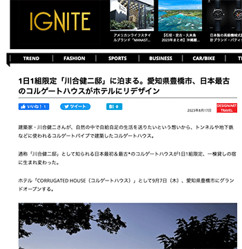 「1日1組限定「川合健二邸」に泊まる。愛知県豊橋市、日本最古のコルゲートハウスがホテルにリデザイン」という記事が、IGNITEに掲載されています