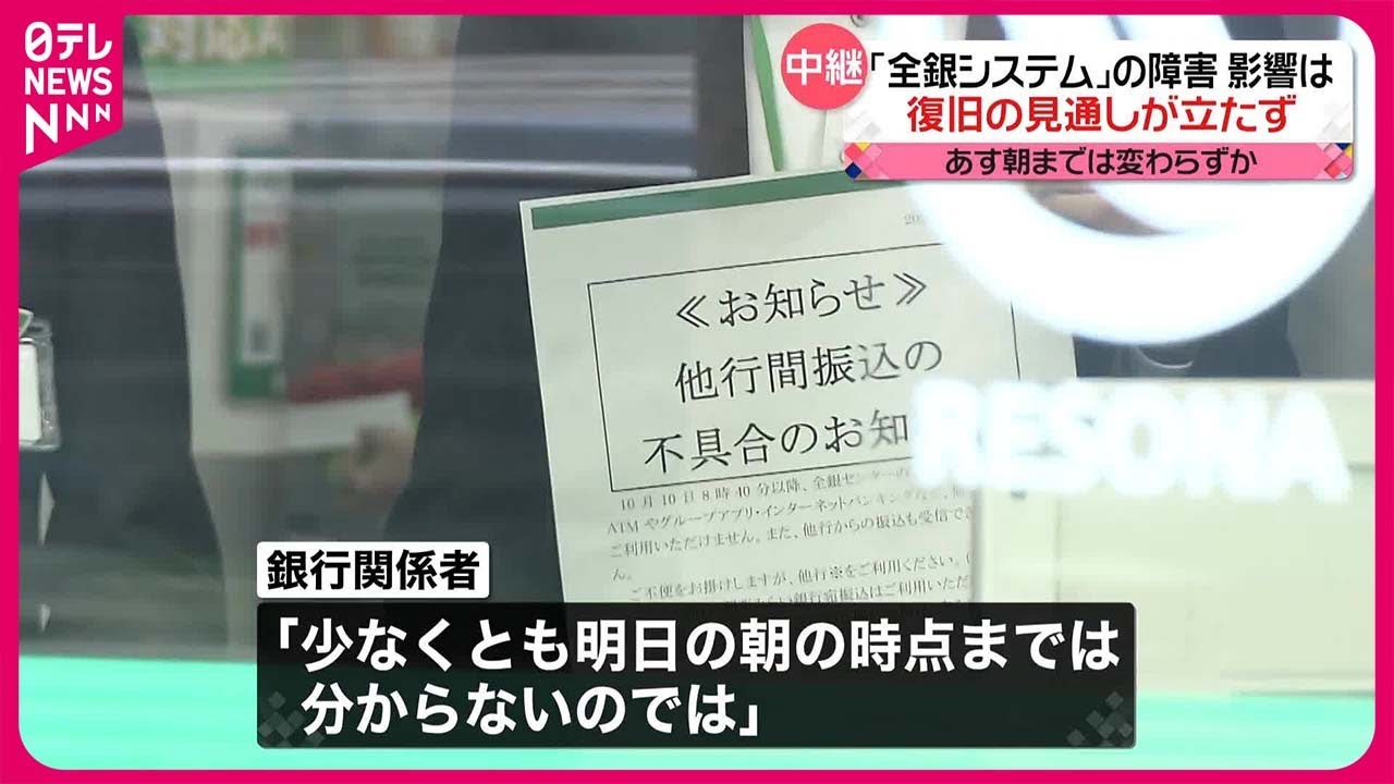 スポンサーリンク 【「全銀システム」の障害】12日朝までは変わらずか 11の金融機関で他行宛ての振り込みできず…/動画(youtube/日テレNEWS) ジャーナル 2023.10.112025.10.24 「【「全銀システム」の障害】12日朝までは変わらずか 11の金融機関で他行宛ての振り込みできず…」という動画ニュースが、youtube(日テレNEWS)にて公開されています。