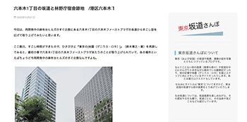 PR「六本木1丁目の坂道と林野庁宿舎跡地 /港区六本木1」という記事が、東京坂道さんぽに掲載されています。