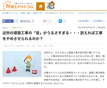 大阪弁護士会の公害対策・環境保全委員会の委員をつとめる山之内桂弁護士に話を聞いたという記事「近所の建築工事の「音」がうるさすぎる・・・訴えれば工事をやめさせられるのか?」が、弁護士ドットコムトピックスに掲載されています。