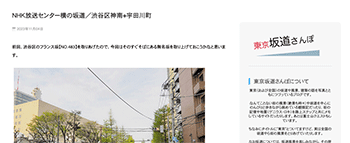 PR「NHK放送センター横の坂道/渋谷区神南+宇田川町」という記事が、東京坂道さんぽに掲載されています。