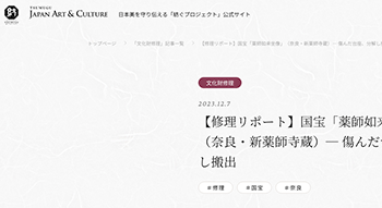 「【修理リポート】国宝「薬師如来坐像」(奈良・新薬師寺蔵)― 傷んだ台座、分解し搬出」という記事が、紡ぐプロジェクトに掲載されています
