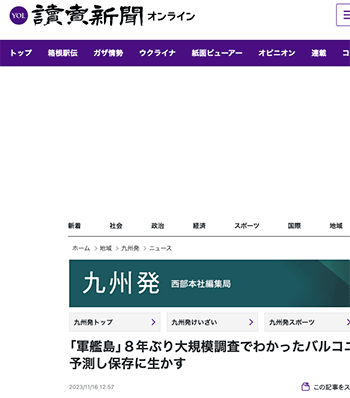「「軍艦島」8年ぶり大規模調査でわかったバルコニー崩落…「余命」予測し保存に生かす」という記事が、読売新聞に掲載されています