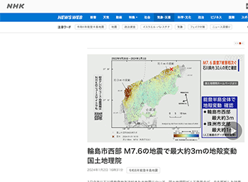 「輪島市西部 M7.6の地震で最大約3mの地殻変動 国土地理院」という国土地理院の取り組みについて取り上げている記事が、NHKに掲載されています