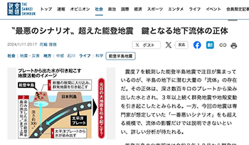 「〝最悪のシナリオ〟超えた能登地震 鍵となる地下流体の正体」という能登半島地震関連の記事が、産経ニュースに掲載されています