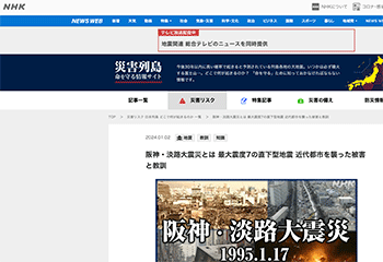 「阪神・淡路大震災とは 最大震度7の直下型地震 近代都市を襲った被害と教訓」という阪神淡路大震災の被害や教訓をまとめているサイトがNHKに掲載されています。