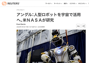 「アングル:人型ロボットを宇宙で活用へ、米NASAが研究」というNASAの取り組みについて取り上げている記事が、ロイターに掲載されています