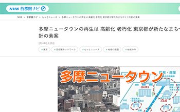 まちづくり「多摩ニュータウンの再生は 高齢化 老朽化 東京都が新たなまちづくり方針の素案」という記事が、NHKに掲載されています