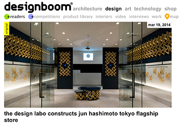 the design laboによる「jun hashimoto表参道ヒルズ店」(東京都)の紹介記事が海外サイトdesign boomに掲載されています。
