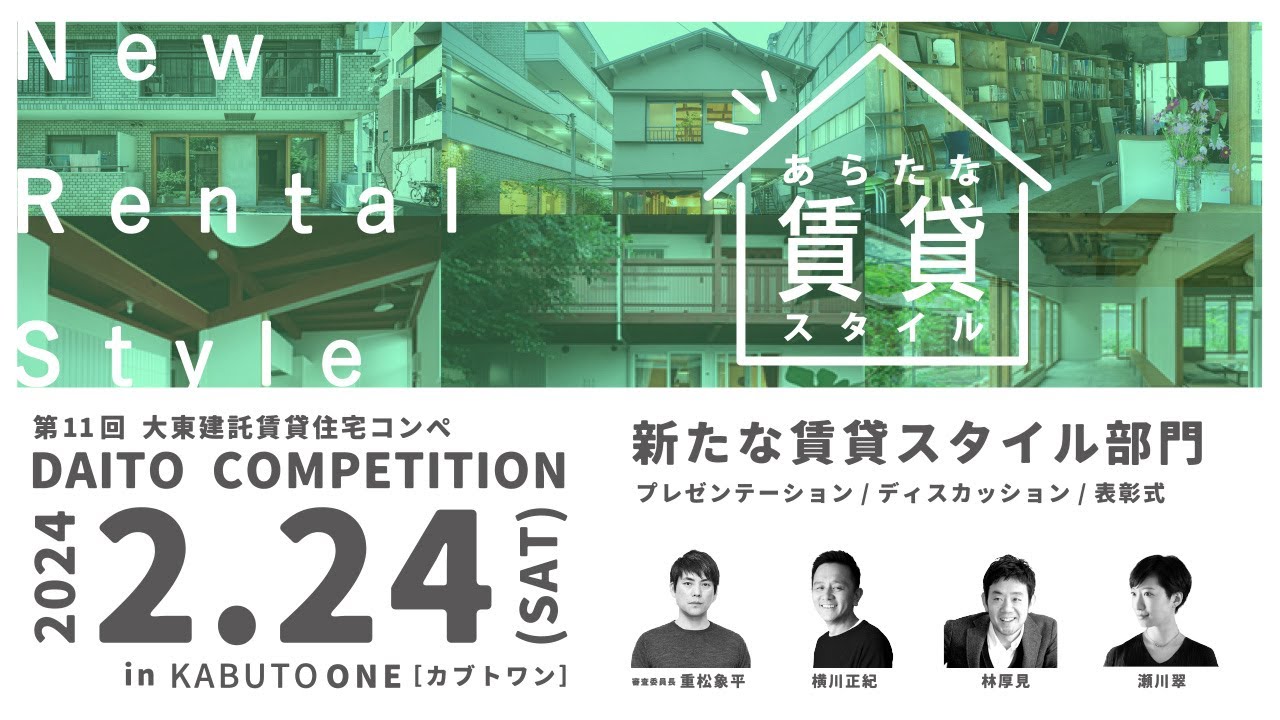 「万博開幕までまもなく1年!日本初の水素燃料電池船 動くパビリオン内部に潜入」という2024年2月24日(土)にKABUTO ONEで行われた、第11回大東建託賃貸住宅コンペの新たな賃貸スタイル部門での受賞者プレゼンテーションの模様について取り上げている動画が、youtube(SHINKENCHIKU.ONLINE)にて公開されています。