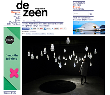 トラフ建築設計事務所によるインスタレーション「Water Balloon Room」の紹介記事が海外サイトdezeenに掲載されています。