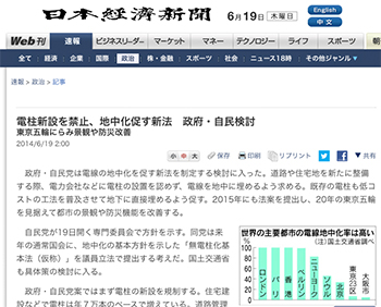 →『電柱新設を禁止、地中化促す新法 政府・自民検討 』