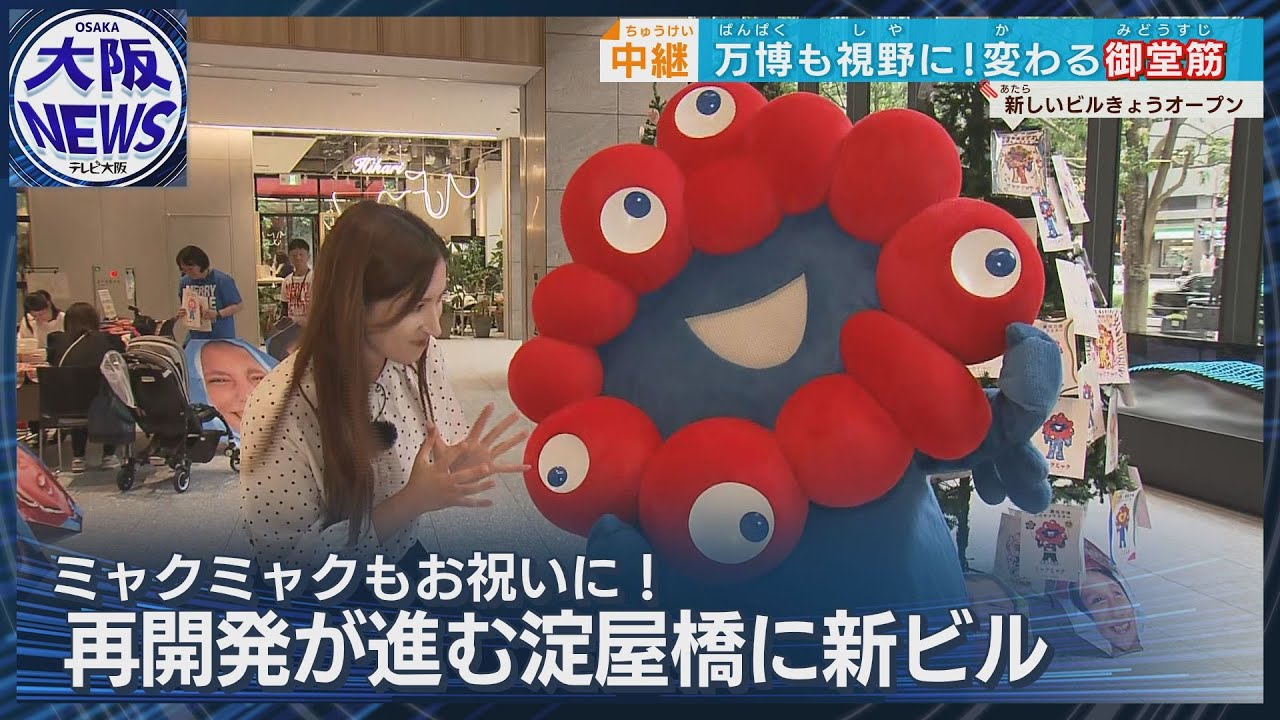 ますます変わりゆく淀屋橋エリアを、ウーデンアナウンサーがミャクミャクとともに中継でお伝えします。