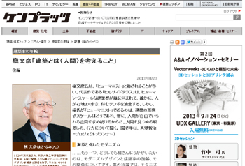 槇文彦氏へのインタビューの後編「建築とは〈人間〉を考えること」がケンプラッツにて掲載されています。