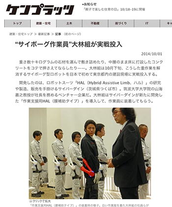 大林組は10月下旬、重作業を解消するサイボーグ型ロボットを日本で初めて東京都内の建設現場に実戦投入するそうです。