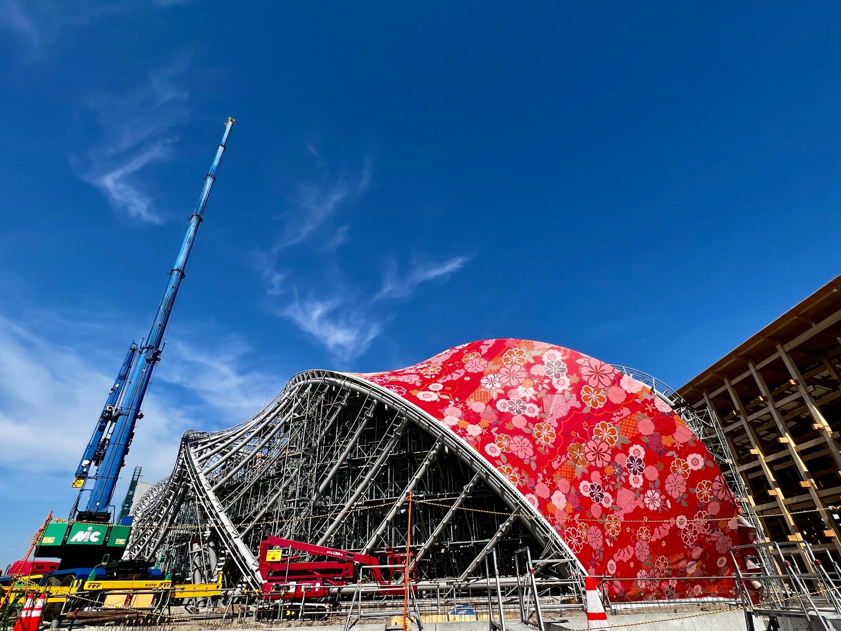 2025年日本国際博覧会(大阪・関西万博) 飯田グループ×大阪公立大学共同出展館 <西陣織>のパビリオン外装工事着手