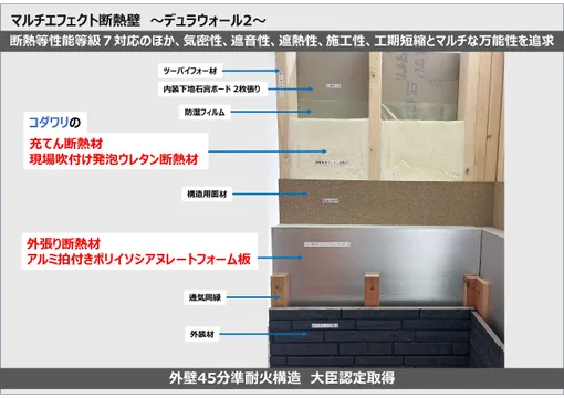 デュラウォール2は、未来水準の高い断熱性能を発揮するツーバイフォー工法用の外壁W断熱工法。複数の効果を実感できる現場吹付け発泡断熱材にコダワリ採用しているのが特徴。W断熱の課題である防火試験もクリアし準耐火構造の大臣認定を自社取得。住宅供給...
