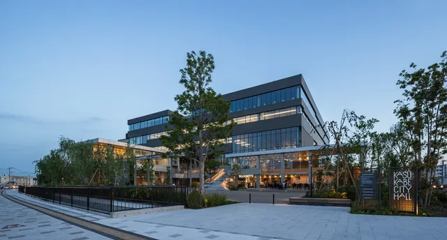分散化していた市役所機能の統合と旧市立病院跡地利用による新庁舎建設。歩道整備が進む市のメインストリートに対し広場を設け、市民利用機能を分棟配置することにより、行政機能の中枢と共に「市民交流の場」として、まちに開かれた庁舎の姿を形成。1階柱頭...