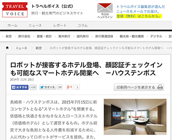 長崎県・ハウステンボスにて、2015年7月15日に新コンセプトとなる“スマートホテル”が開業するそうです。