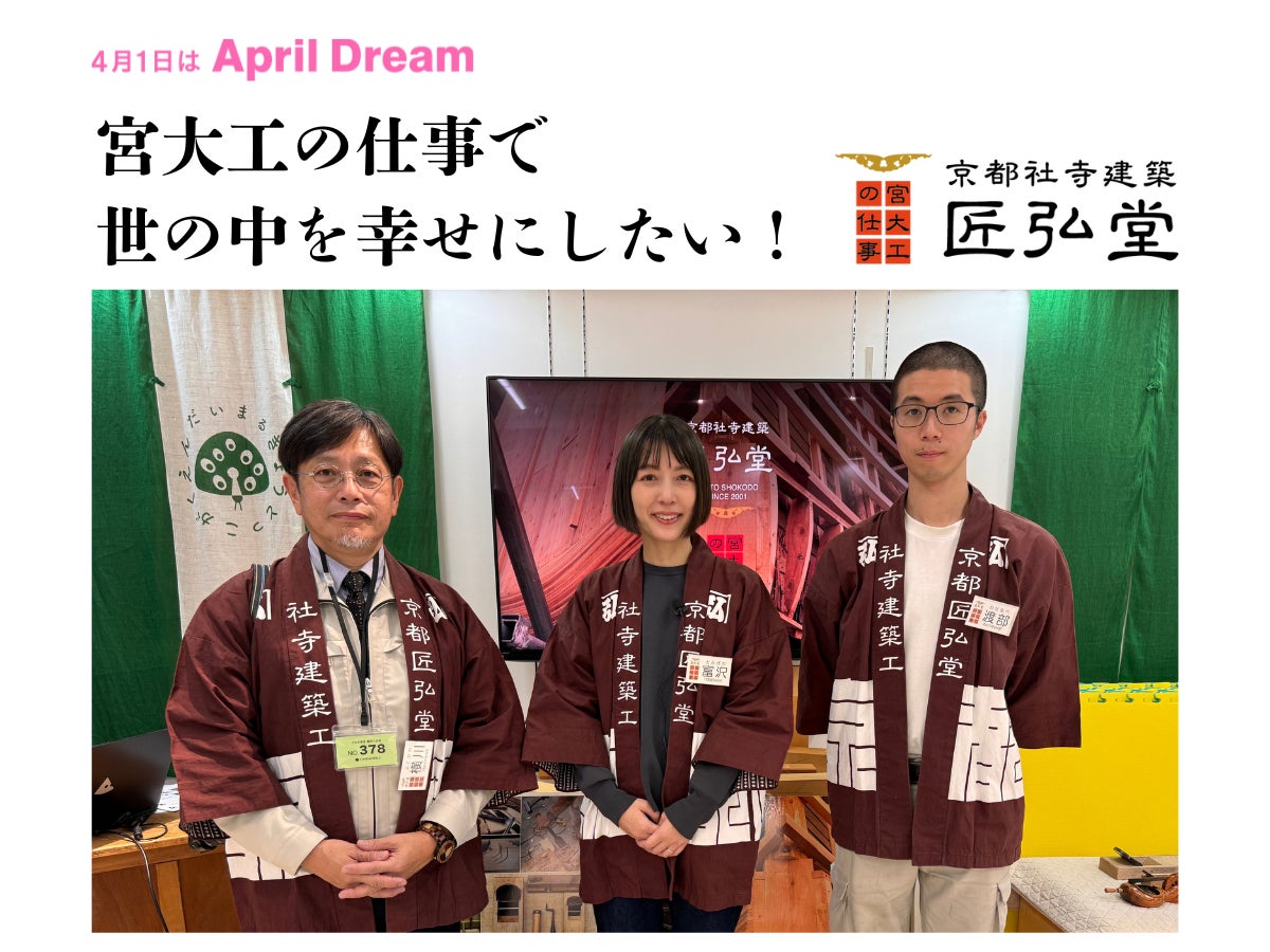 「宮大工の仕事で 世の中を幸せにしたい!~平均年齢29歳・京都の宮大工集団の社会貢献~」という匠弘堂の取り組みについて取り上げている記事が、PR TIMES(匠弘堂)に掲載されています