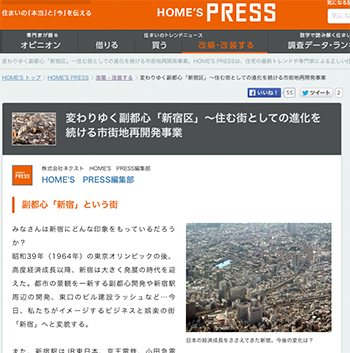 「変わりゆく副都心「新宿区」~住む街としての進化を続ける市街地再開発事業」という新宿区の状況などを新宿区都市計画部地域整備課に取材した記事が、HOME’S PRESSに掲載されています。