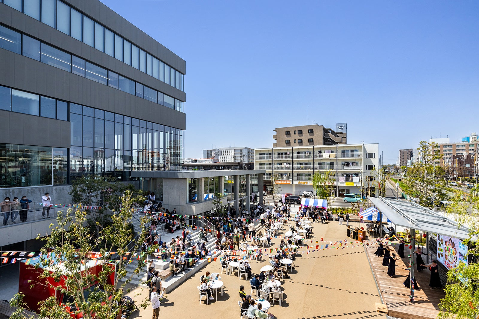 春日部市の新庁舎は、市民が集える「まちなかひろば」を中心に、レストランやホールなどを配置した分棟構成。行政機能だけでなく、市民の居場所として親しまれる空間を目指しています。