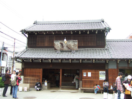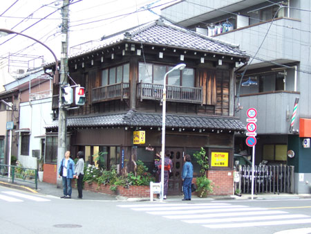 外観的には、年末に京都を歩いたせいか、実は今見てみるとなんだかあまり新鮮さはないのですけど(汗)、散歩当日はさすがにまわりにこんな木造でいい感じの建物がなかったせいもあって興味津々で、思わずパチリと一枚。(写真1)