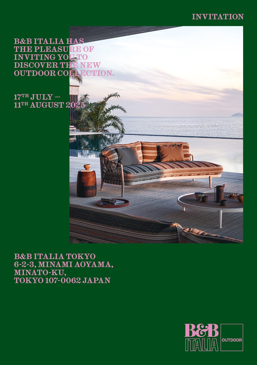 B&B Italiaは2025年夏、東京・大阪で「Outdoor Collection 2025」の新作展示を開催。注目はAntonio Citterioが手がける人気シリーズ〈Erica〉の進化版。曲線的なソファやモジュール式シーティング、ハイバックのデイベッドなどが加わり、都市のテラスから地中海リゾートまで多様な空間に対応。高耐久素材と洗練されたデザインで、アウトドア家具の新たなスタンダードを提案する。