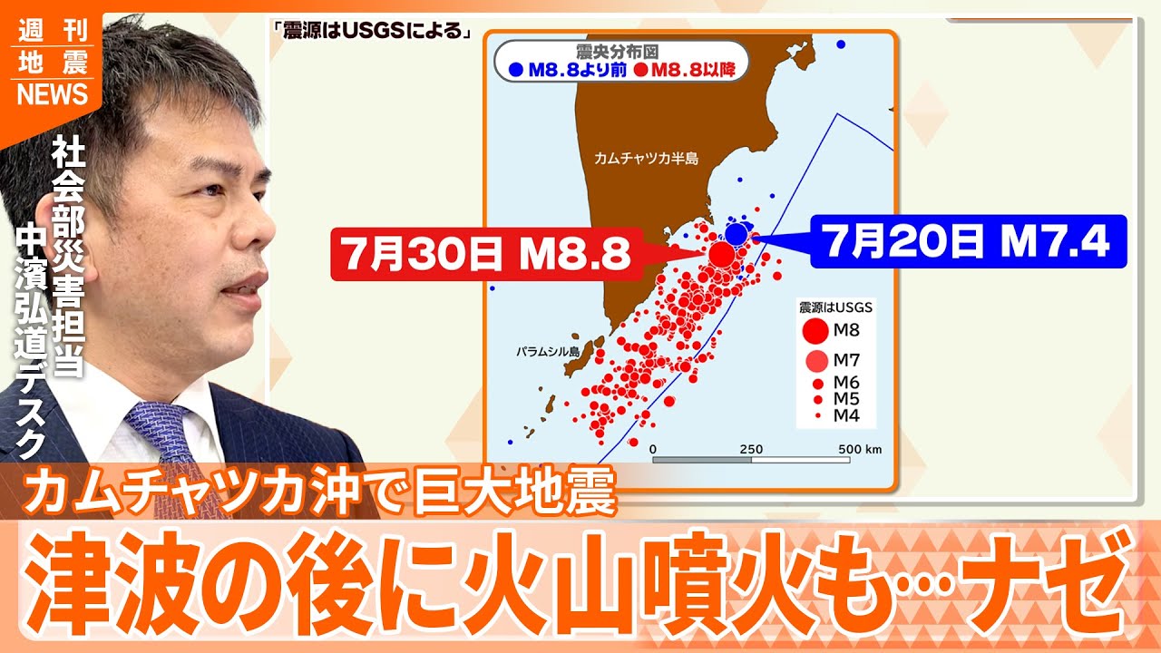 「【解説】カムチャツカ巨大地震で日本各地で津波到達 火山噴火は地震の影響か?『週刊地震ニュース』」という週刊地震ニュースのアーカイブ動画が、youtube(日テレNEWS)にて公開されています。