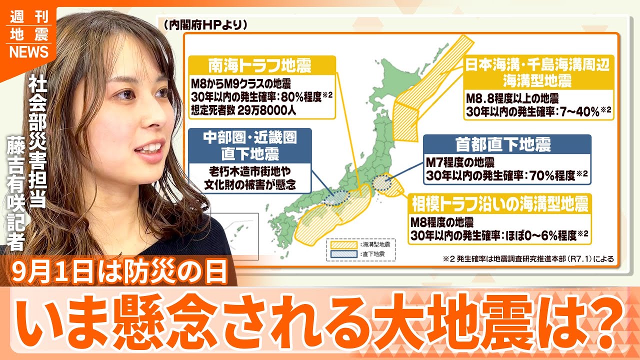 「【解説】9月1日は防災の日!日本でいま懸念される大地震は?いま見直したい、災害に備える”4つのポイント”とは」という週刊地震ニュースのアーカイブ動画が、youtube(日テレNEWS)にて公開されています。